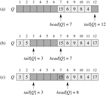 Figure 10.2 shows the effects of the ENQUEUE and DEQUEUE operations. Each operation takes O(1) time.