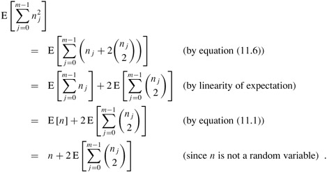 pairs of keys that may collide; each pair collides with probability 1/m if h is chosen at random from a universal family ℋ of hash functions. Let X be a random variable that counts the number of collisions. When m = n2, the expected number of collisions is