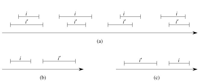 i is to the left of i' (i.e., high[i]< low[i']),