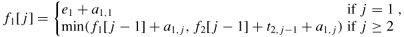 It is also easy to reason about f1[1] and f2[1]. To get through station 1 on either line, a chassis just goes directly to that station. Thus,