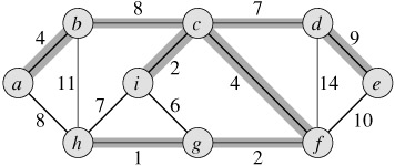 is minimized. Since T is acyclic and connects all of the vertices, it must form a tree, which we call a spanning tree since it "spans" the graph G. We call the problem of determining the tree T the minimum-spanning-tree problem.[1] Figure 23.1 shows an example of a connected graph and its minimum spanning tree.