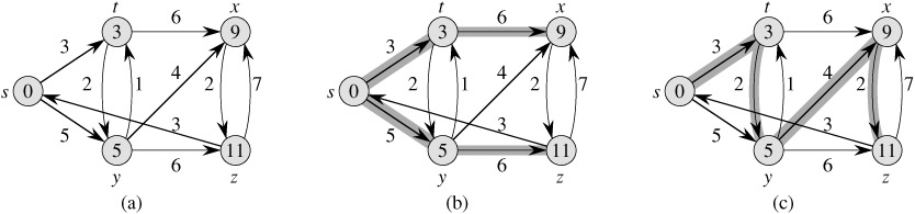 Shortest paths are not necessarily unique, and neither are shortest-paths trees. For example, Figure 24.2 shows a weighted, directed graph and two shortest-paths trees with the same root.