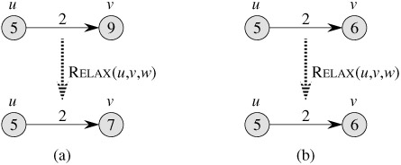 Figure 24.3 shows two examples of relaxing an edge, one in which a shortest-path estimate decreases and one in which no estimate changes.