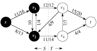Figure 26.4 shows the cut ({s, v1, v2}, {v3, v4, t}) in the flow network of Figure 26.1(b). The net flow across this cut is