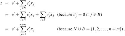 for all j ∈ N, and z = v′. Since all slack forms are equivalent, if we evaluate the original objective function on