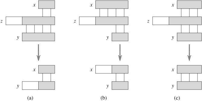 Suppose that x, y, and z are strings such that x ⊐ z and y ⊐ z. If |x| ≤ |y|, then x ⊐ y. If |x| ≥ |y|, then y ⊐ x. If |x| = |y|, then x = y.