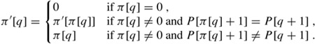 where π(i)[q] is defined in terms of functional iteration, so that π(0)[q] = q and π(i+1)[q] = π[π(i)[q]] for i ≥ 1, and where it is understood that the sequence in π*[q] stops when π(t)[q] = 0 is reached. The following lemma characterizes π*[q], as Figure 32.11 illustrates.