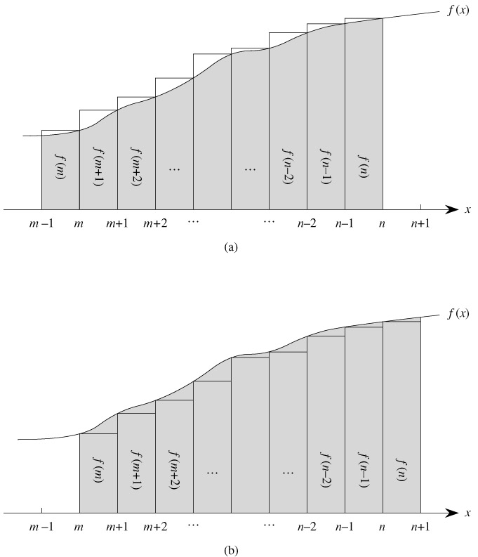 , where f (k) is a monotonically increasing function, we can approximate it by integrals: