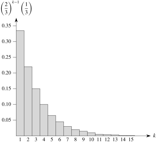 since we have k - 1 failures before the one success. A probability distribution satisfying equation (C.30) is said to be a geometric distribution. Figure C.1 illustrates such a distribution.
