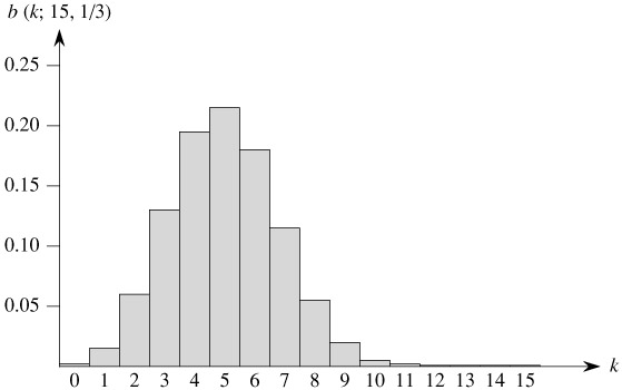 Figure C.2 illustrates a binomial distribution. The name "binomial" comes from the fact that (C.33) is the kth term of the expansion of (p + q)n. Consequently, since p + q = 1,